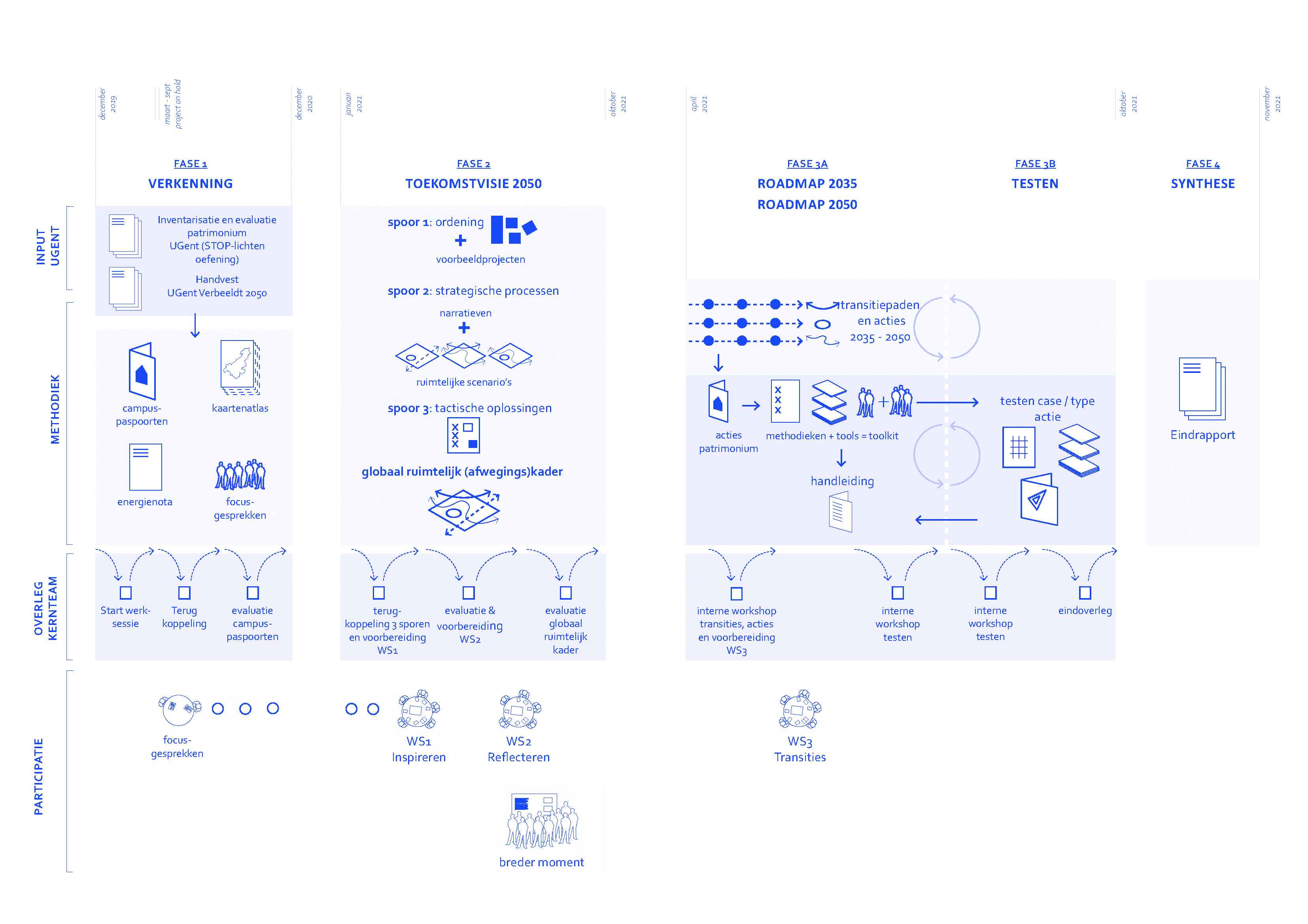 Ghent University chooses to draw up a masterplan that aims to put a dot on the horizon: to express a bold ambition about what the university wants and can be in terms of infrastructure in the 21st century.